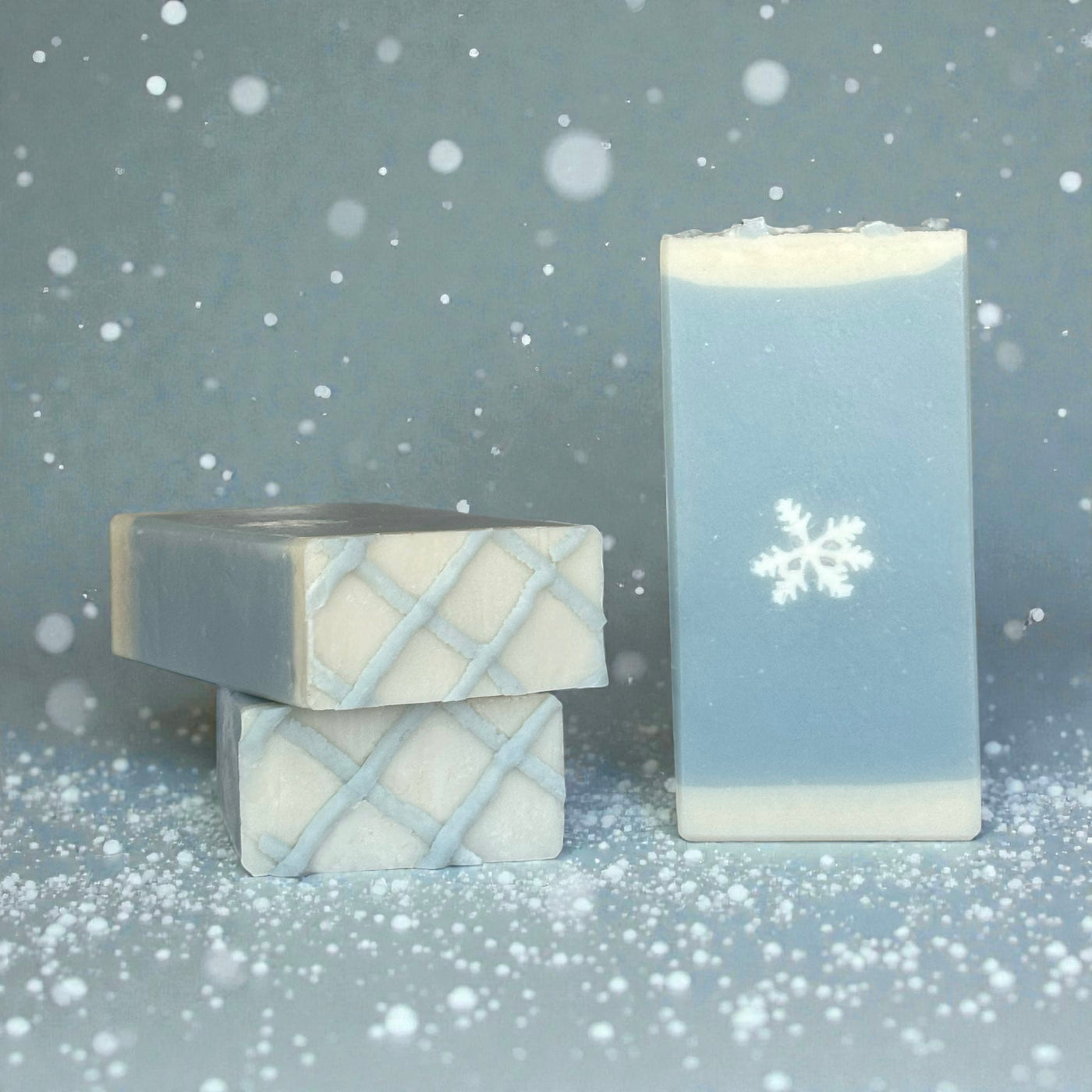 A serene winter moment wrapped into a soap bar. This handcrafted winter soap is charming with a snowflake in the front and a quilted top design.